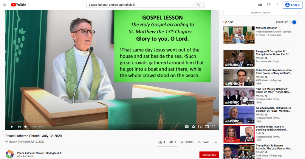 Yesterday’s lectionary reading, for the sixth Sunday after Pentecost (ordinary time to non-Lutherans), was the the parable of the sower in Matthew 13. Which means, if you think about it, watching the service on social media was almost like a parable about a parable.