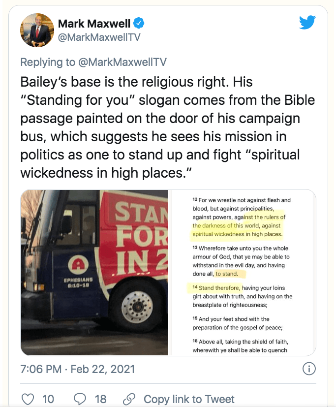 In the end, Bailey wants the racists, insurrectionists, and conspiracy theorists to be with him… him and religion.
