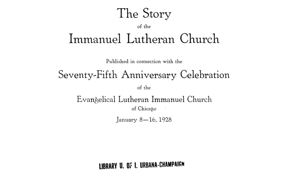 The Story of the Immanuel Lutheran Church – Forgotten Bookshttps://www.forgottenbooks.com › download › The…PDFP ublished in connection with the. Sevent y. —Fifth Anniversary. Celebration of the. Evangelical Lutheran Immanuel Church of Chicago. January. 8. 16,. 1928.