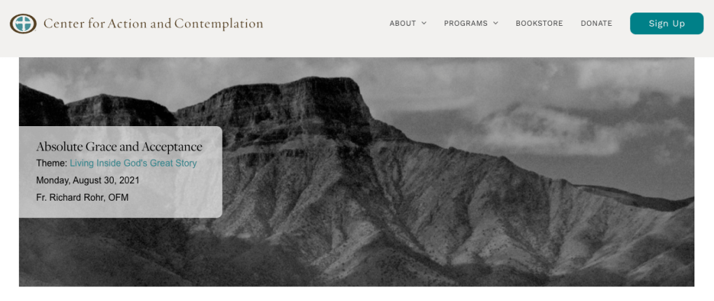 Fr. Richard Rohr OFM, “Absolute Grace and Acceptance,” Living Inside God’s Greatness and Glory, Center for Action and Contemplation, Albuquerque, Aug. 30, 2021 https://cac.org/absolute-grace-and-acceptance-2021-08-30/.