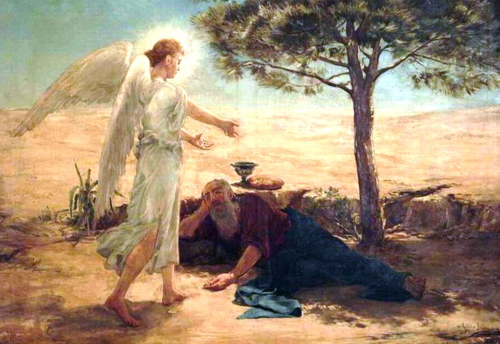 1 Kings 19 (NRSVue): 4 But [Elijah] himself went a day’s journey into the wilderness and came and sat down under a solitary broom tree. He asked that he might die, “It is enough; now, O Lord, take away my life, for I am no better than my ancestors.” 5 Then he lay down under the broom tree and fell asleep. Suddenly an angel touched him and said to him, “Get up and eat.” 6 He looked, and there at his head was a cake baked on hot stones and a jar of water. He ate and drank and lay down again. 7 The angel of the Lord came a second time, touched him, and said, “Get up and eat, or the journey will be too much for you.” 8 He got up and ate and drank; then he went in the strength of that food forty days and forty nights to Horeb the mount of God.